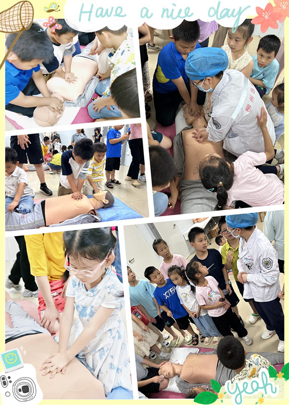 大家还来到临技中心开展健康小课堂,由口腔门诊部老师为大家介绍口腔卫生知识,由急诊科老师为大家示范和讲解急救知识,小朋友还在模拟人上体验了急救流程。