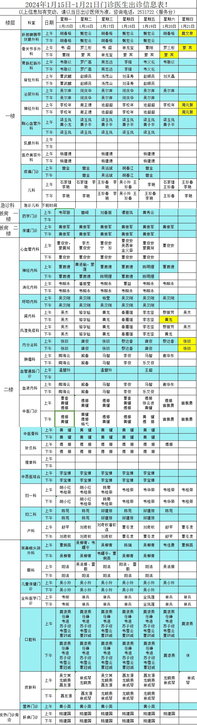 上一条:2024年2月26日-3月3日门诊医生出诊信息表