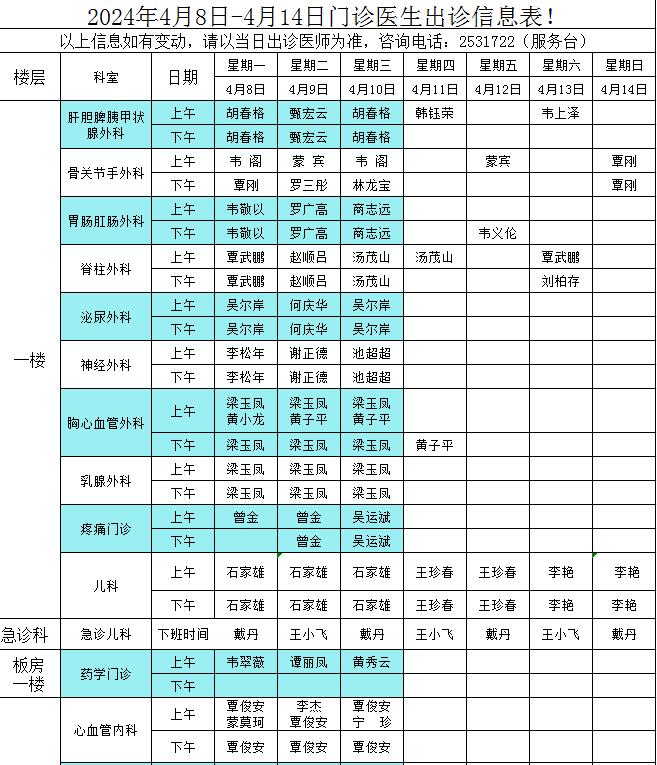 下一条:2024年4月1日-4月7日门诊医生出诊信息表