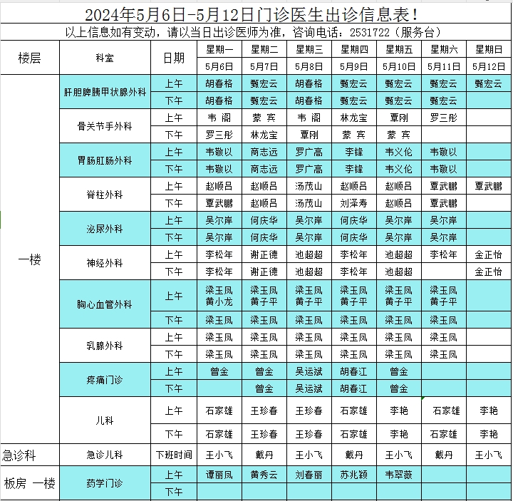 下一条:2024年4月29日-5月5日门诊医生出诊信息表