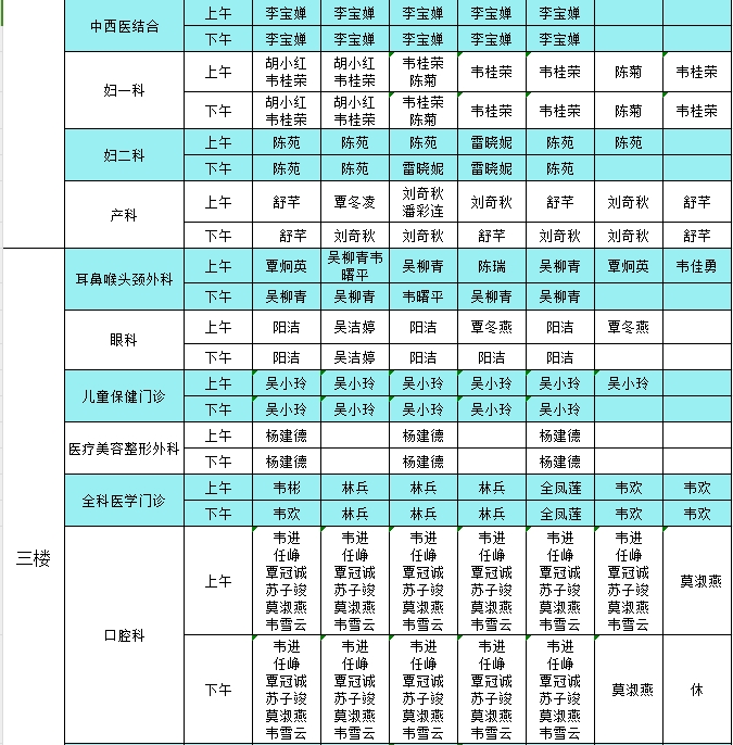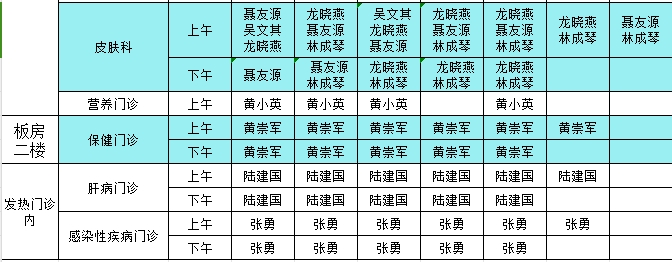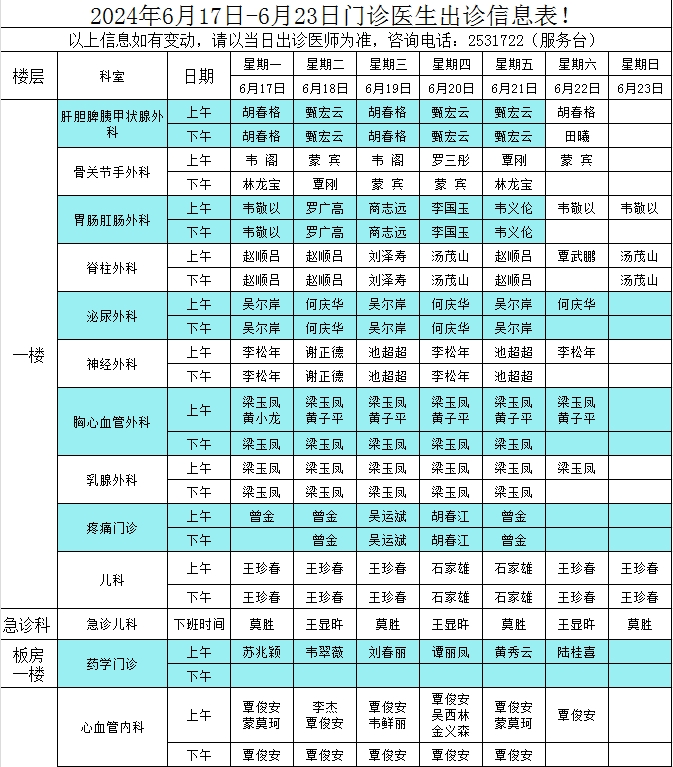 2024年6月17日-6月23日门诊医生出诊信息表