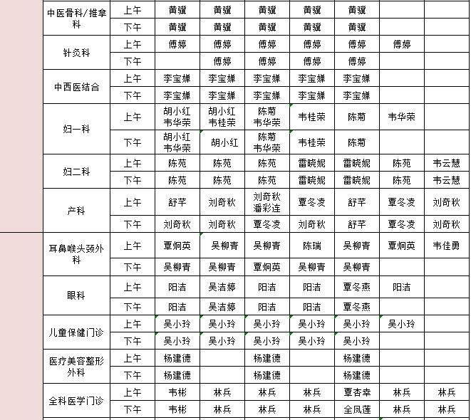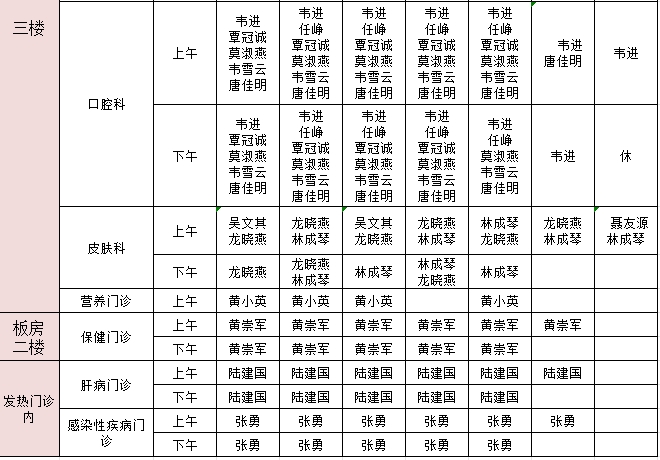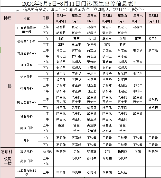 2024年8月5日-8月11日门诊医生出诊信息表