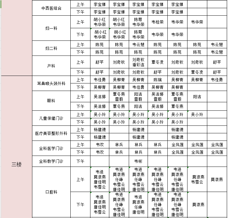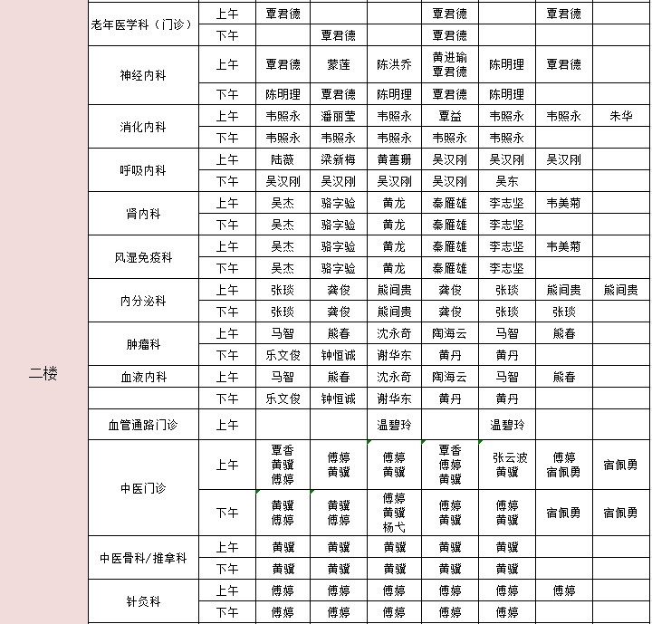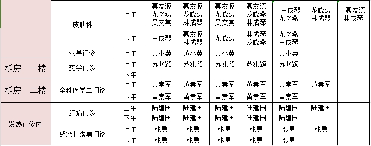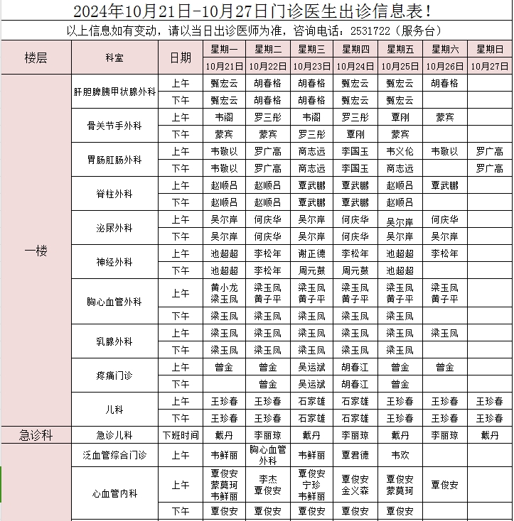 2024年10月21日-10月27日门诊医生出诊信息表