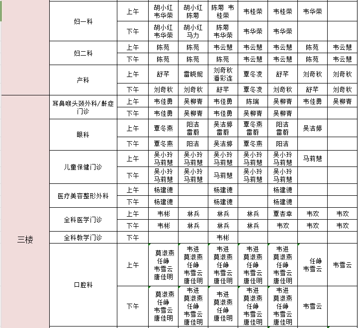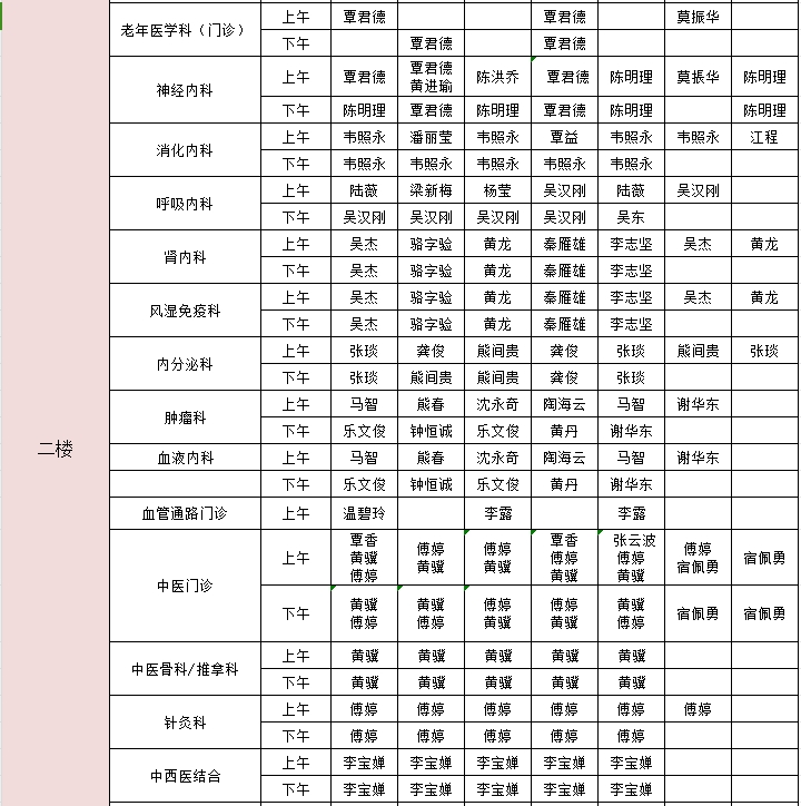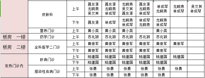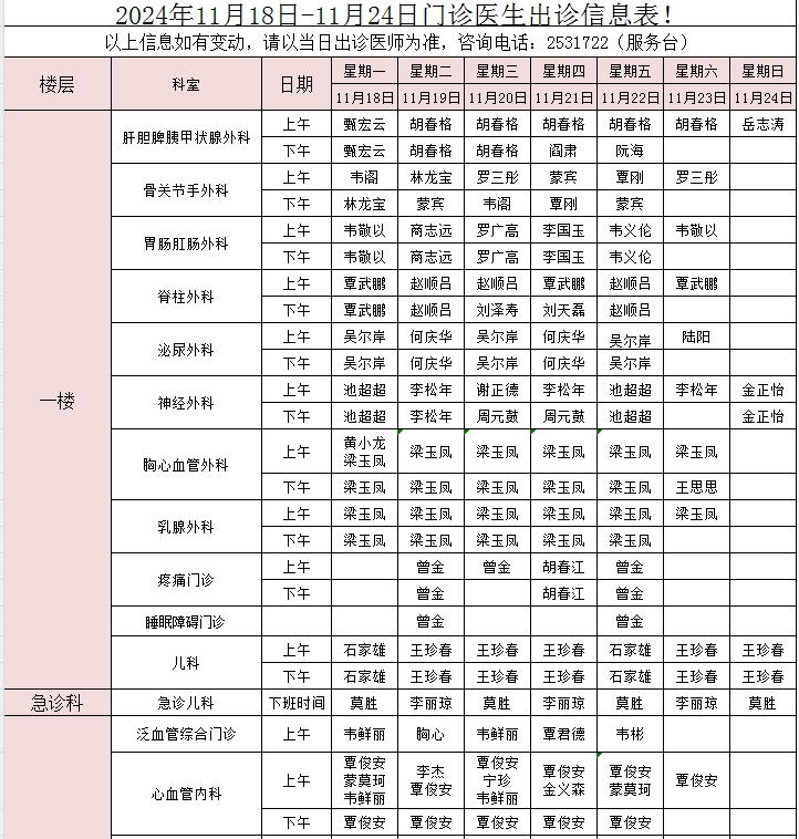 2024年11月18日-11月24日门诊医生出诊信息表