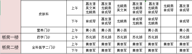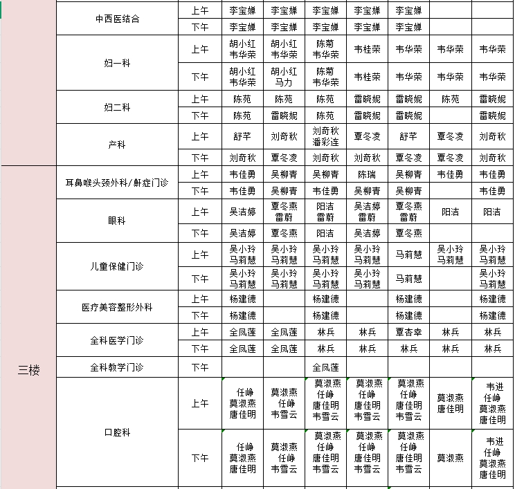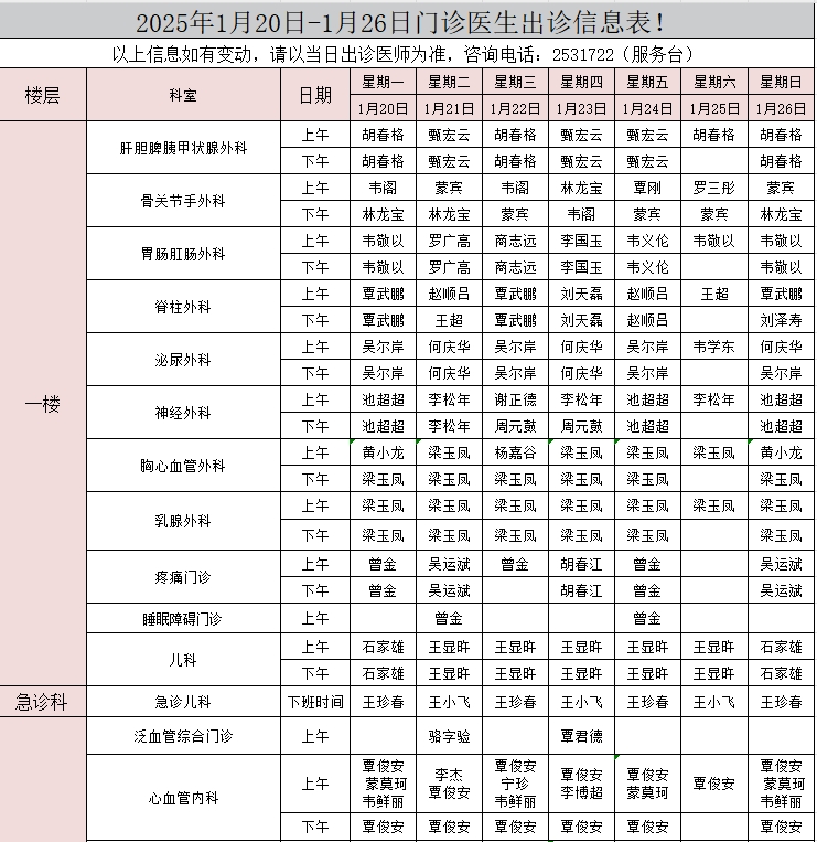 2025年1月20日-1月26日门诊医生出诊信息表
