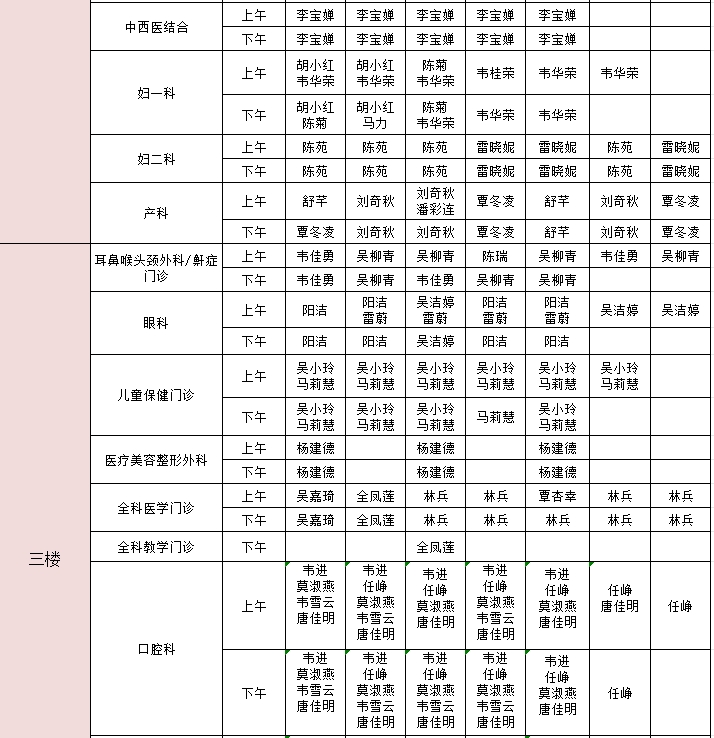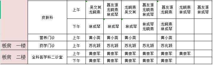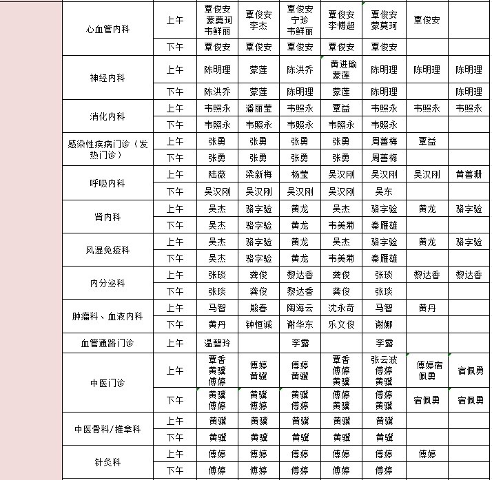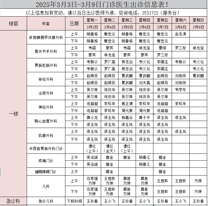 2025年3月3日-3月9日门诊医生出诊信息表