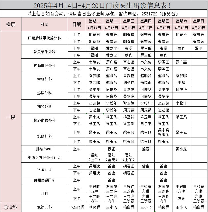 下一条:2025年4月7日-4月13日门诊医生出诊信息表