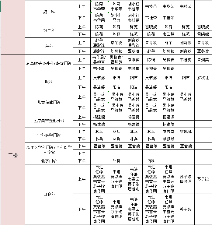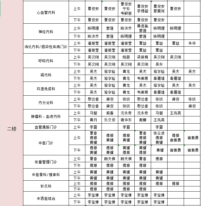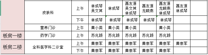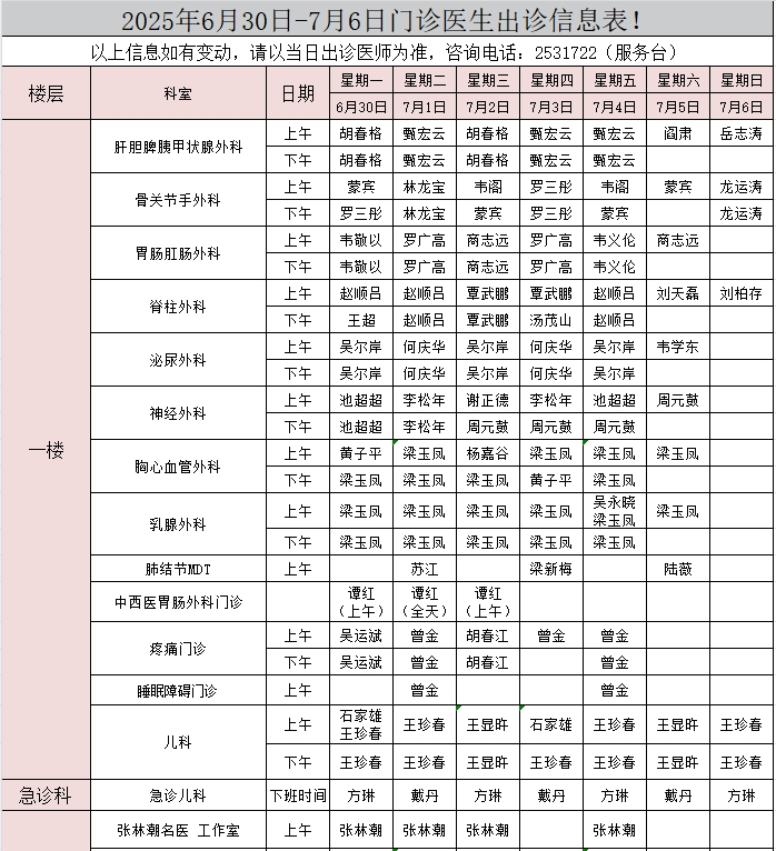 2025年6月30日-7月6日门诊医生出诊信息表