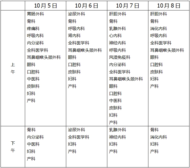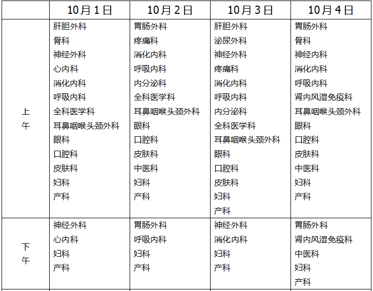 国庆节、中秋节假期门诊、急诊开诊信息公布如下。