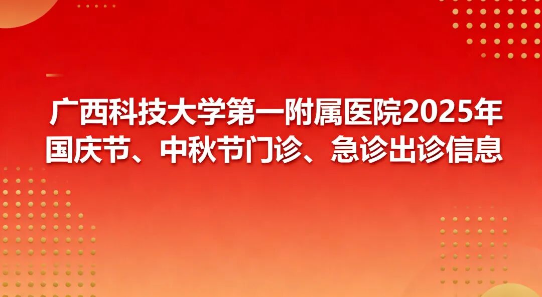 双节同庆,根据通知安排,2025年国庆节、中秋节假期放假时间为:2025年10月1日(周三)至2025年10月8日(周三),共8天。9月28日(周日)各10月11日(周日)正常上班。我院实行无假日医院工作制,现将我院