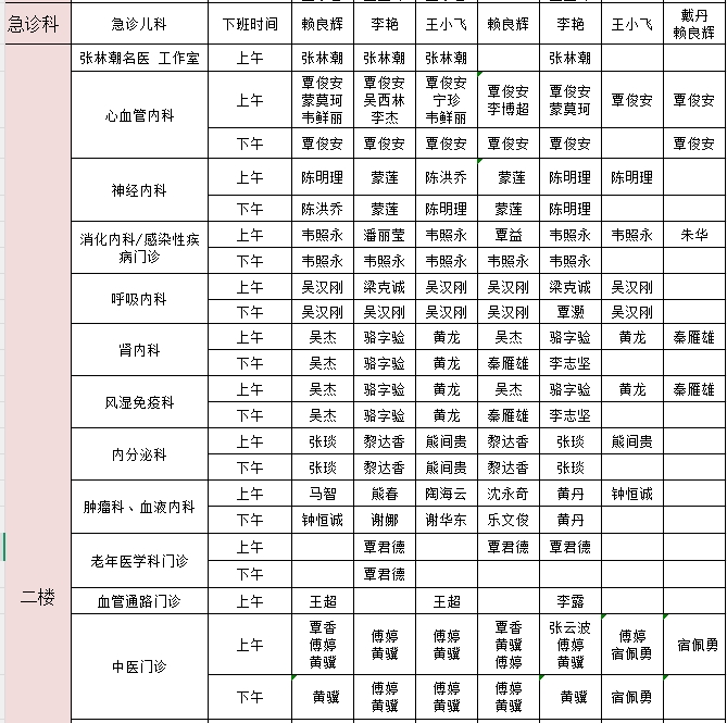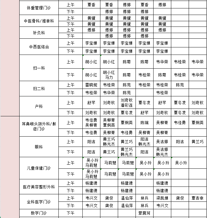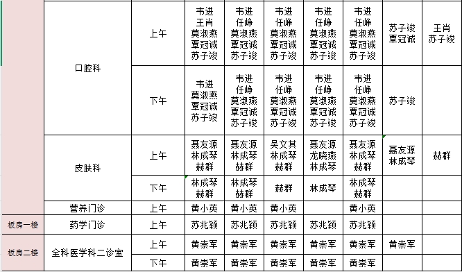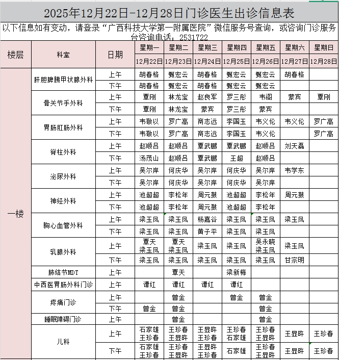 2025年12月22日-12月28日门诊医生出诊信息表