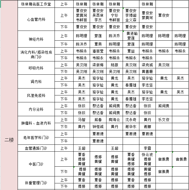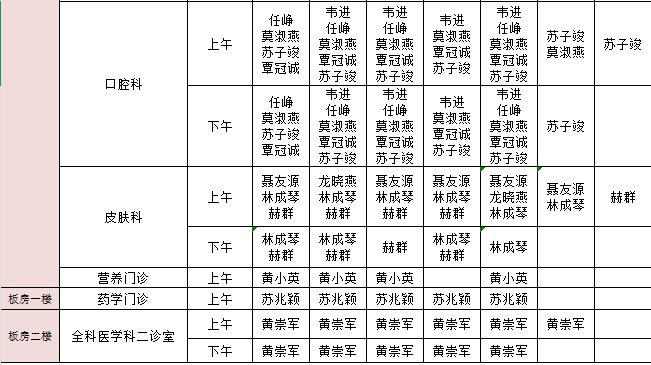 2026年1月26日-2月1日门诊医生出诊信息表