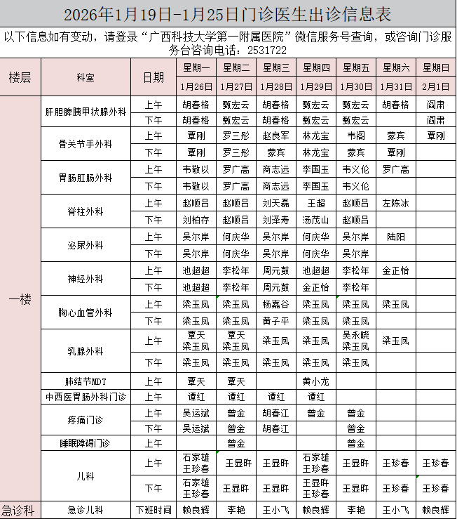 下一条:2026年1月19日-1月25日门诊医生出诊信息表