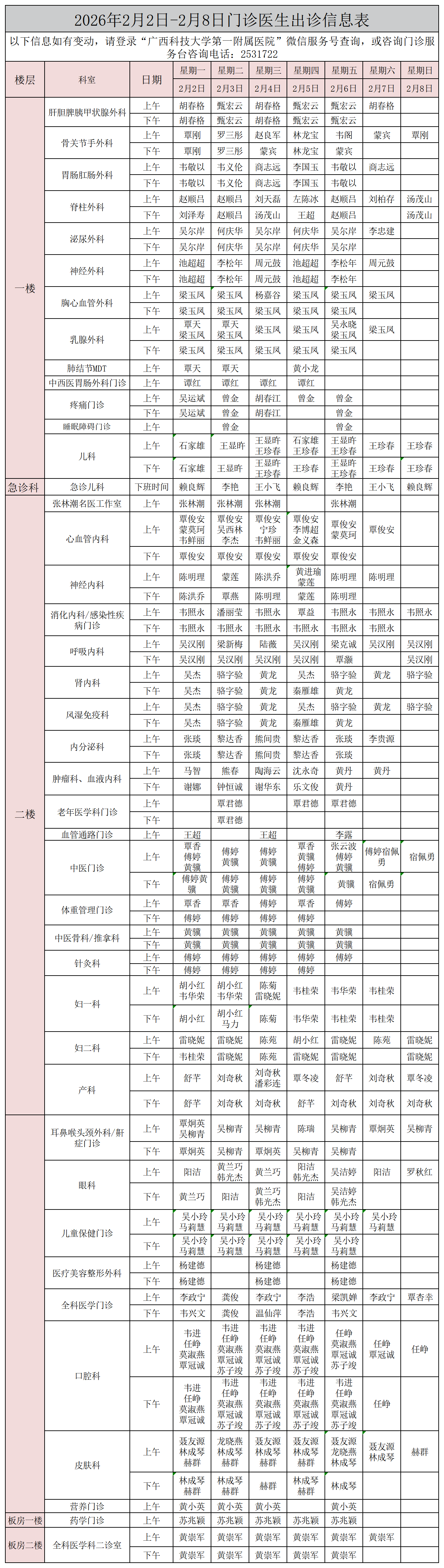 下一条:2026年1月26日-2月1日门诊医生出诊信息表