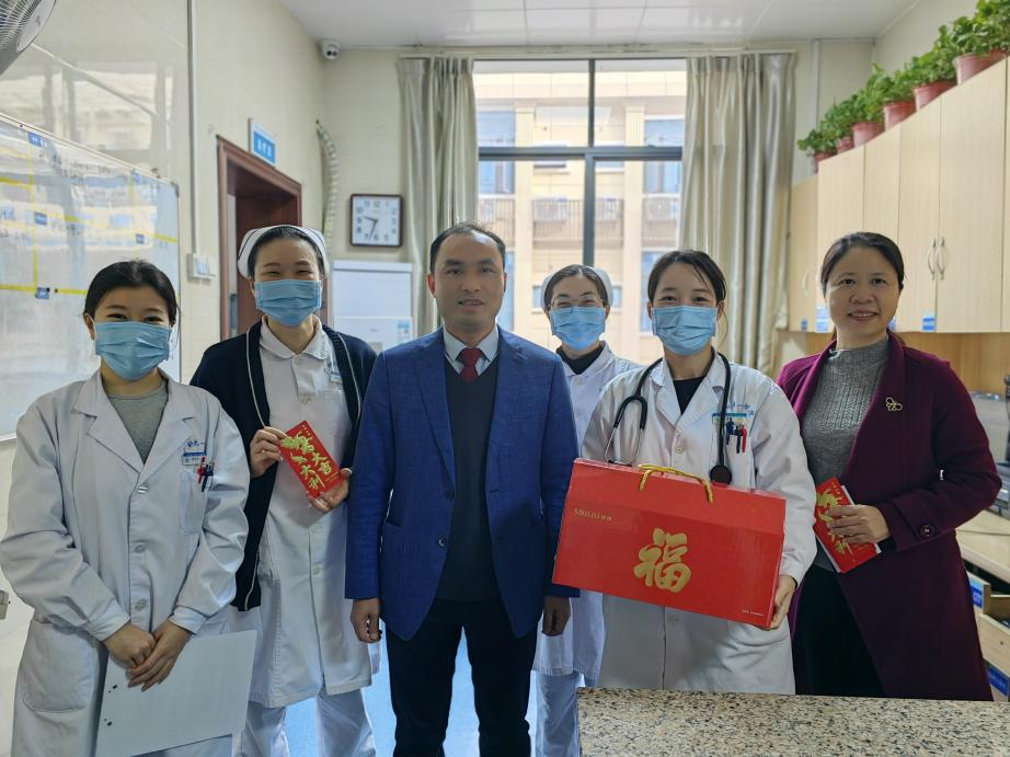 院办、工会、人事科、医务部、护理部、医联体服务部、信息科、总务科等相关职能科室负责人及职工代表参加慰问。(宣传科 辜丽娜)