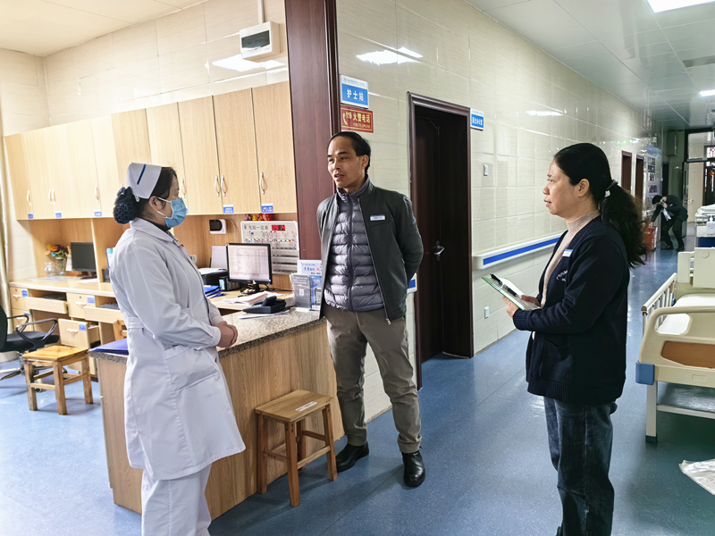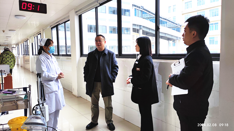 春节临近,为贯彻上级有关安全生产工作部署,坚决预防和遏制各类安全生产事故的发生,确保全院安全稳定,2024年2月8日上午,医院党委书记庞晓红、院长覃天及领导班子成员,分工分组深入全院各科室、各区域开展春节节前安全生产大检查,排查安全隐患。