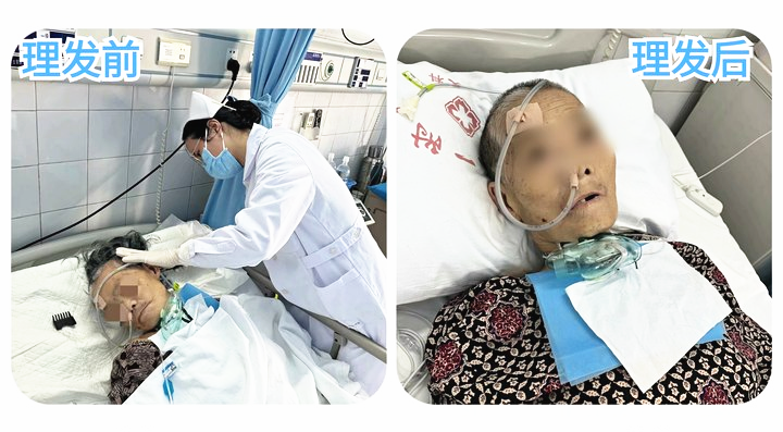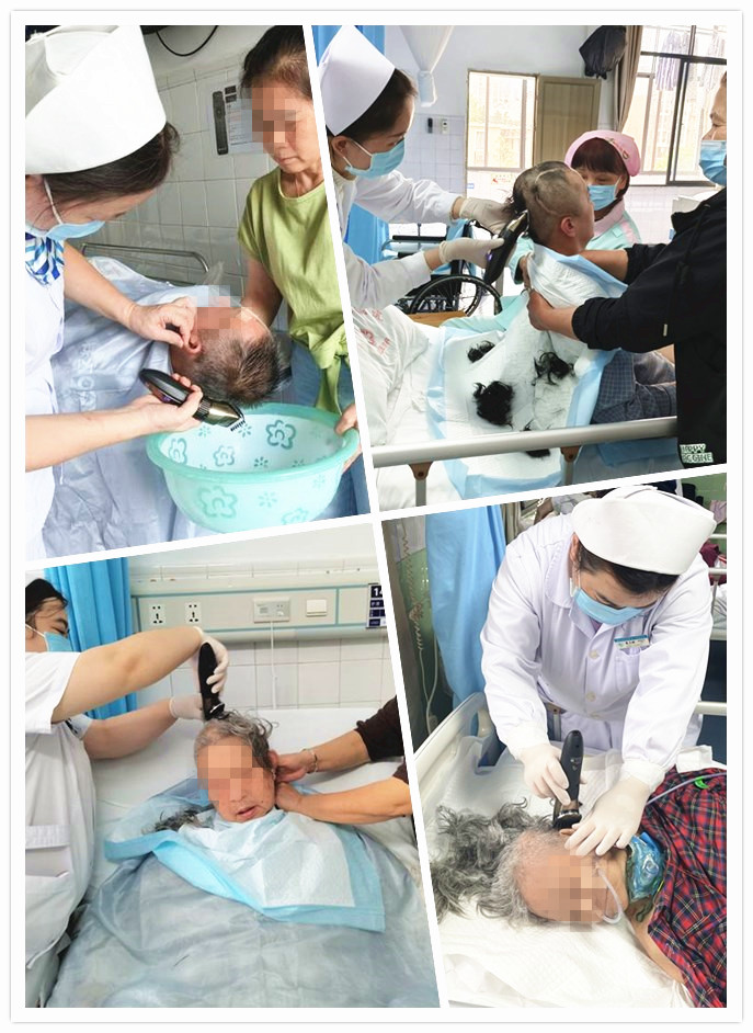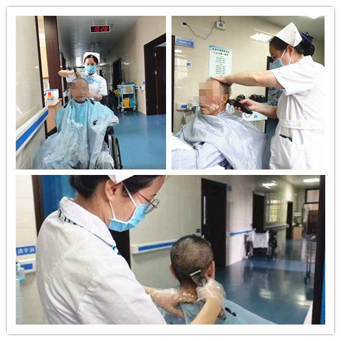 今年81岁的患者陆奶奶,因病情长期卧床生活不能自理,靠护工在医院照料生活起居。住院期间,护士查房时注意到陆奶奶头发过长,考虑到长期卧床,夏季出汗较多会滋生细菌,便主动提出帮她理发。征得家属同意后,护士在护工的配合下,准备好理发用品,将隔离布轻轻地围好在陆奶奶脖子处,缓缓推动理发器,动作轻柔、仔细……不一会儿工夫,便将陆奶奶蓬乱的头发,打理得整齐利索,看着老人家清爽精神的模样,护士也觉得欣慰。