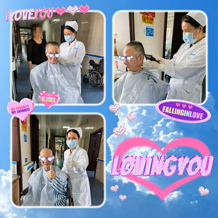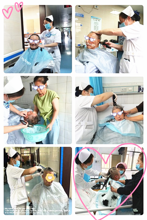对健康的人来说,理发、剃须可能是一件很简单、很平常的小事,但是对于腿脚不便、甚至长期卧床生活不能自理的病人来说,却是一件非常困难的事。如果送到理发店去剪头发,一个是不方便,一个是病人的身体情况不允许。但是如果在家,家属也是很吃力的,一边帮病人翻身一边在床上或者床旁理发或剃须,怎么也是不方便。为了切实解决患者及家属理发、剃须的小事情,2023年3月起,康复医学科的护士团队推出了“一科一品”专科特色服务——关爱患者,从“头”开始,一把推子、一把梳子、一张围布、一盆温水,在病房内客串起了理发师“Tony”。