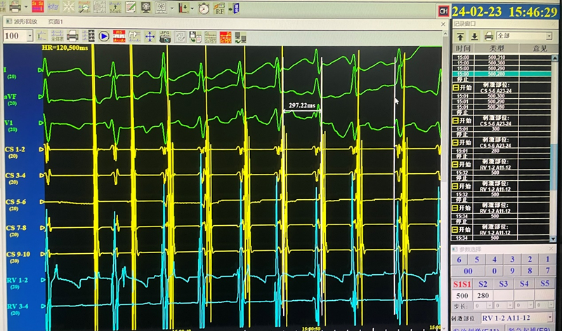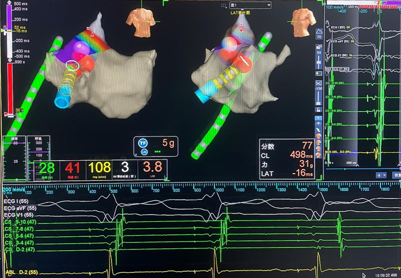 考虑到患儿将进入快速生长发育的青春期,为了不让抗心律失常药物及心动过速影响其正常生长发育,医疗团队决定率领团队对该患儿进行三维射频消融术,一次性根治病根。在手术过程中进行细致的腔内电生理检查,并在临床中诱发出该名患儿发作的心动过速,确认其为左侧旁道参与的房室折返性心动过速。