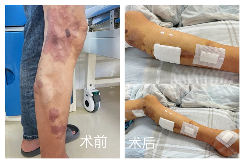 【外套式剥脱导管治疗下肢静脉曲张】15岁患者自诉一年前出现右下肢闷胀,小腿静脉迂曲,入院后行多普勒超声检查显示患者右下肢大隐静脉曲张,小腿凸出体表处浅表血管内血流速度淤缓,血液回声呈高凝状态。胸心血管外科团队成功为患者行外套式剥脱导管治疗,术后患者恢复良好,患者及家属表示对手术效果非常满意。