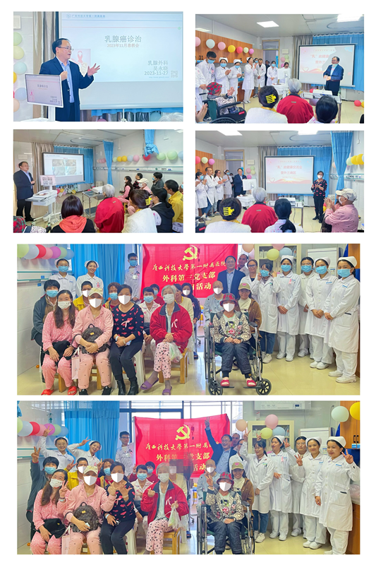 乳腺外科医护人员向院内外广大女性同胞科普乳腺健康,进行公益讲座,呼吁各位女性同胞们保持良好的生活方式,保持心态和平,坚持体育锻炼,注意劳逸结合,做到定期检查和自我检查相结合。