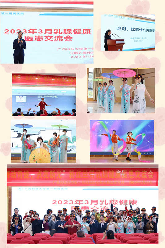 乳腺外科成功举办以“舞动奇迹,点亮星光”为主题的第四届粉红丝带乳腺医患交流会。本次活动邀请了乳腺疾病的住院患者及出院病友一同参加。体现了乳腺外科“以患者为中心”的人文关怀,增进了同伴之间的默契,加强了团队合作精神。我们医务人员永远是乳腺癌病友们的勇气、底气和安全感!