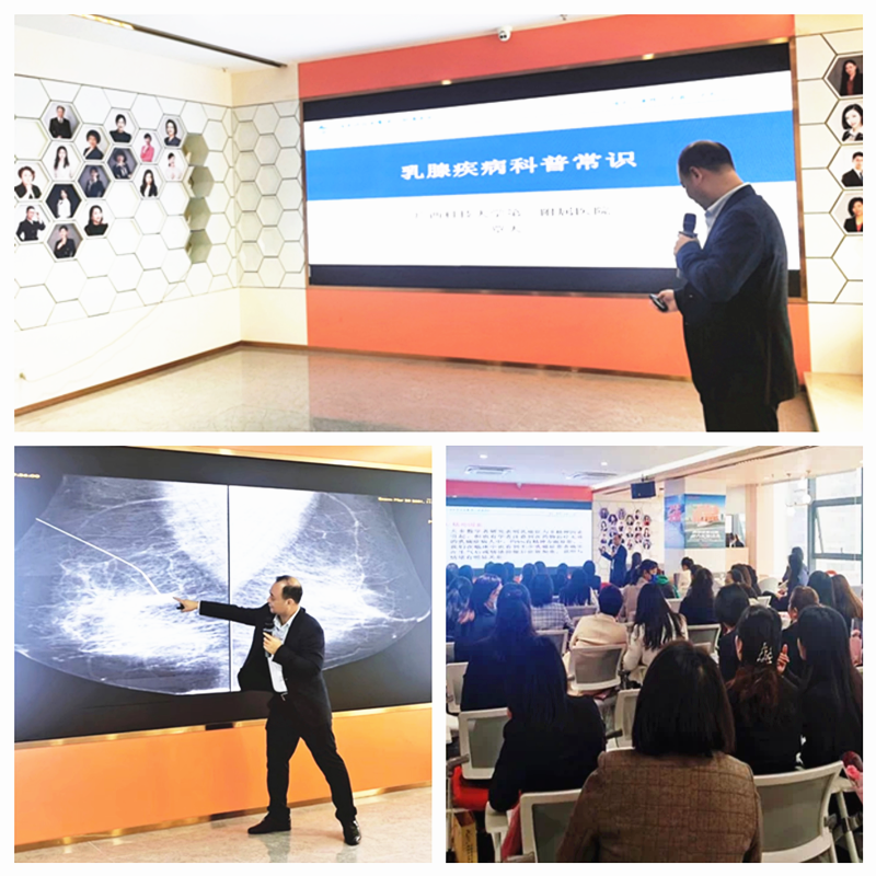 “女神节”之际,科室为普及女性健康知识,守护女性乳腺健康,医院院长、乳腺外科带头人覃天赴柳州平安保险公司开展“38女神节”关爱女性健康专题讲座。