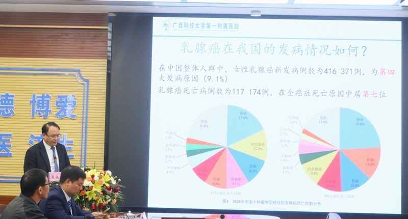 12月24日,广西科技大学第一附属医院成功举办自治区级医学继续教育项目《乳腺疾病诊疗新进展学习班》。本次学习班邀请了省内乳腺领域知名专家就乳腺领域的新进展、新发现、新技术及难点热点问题进行专题讲座,交流乳腺疾病诊治新进展,为医院与全区乳腺疾病同道们搭建了交流学习的平台。院党委副书记、院长覃天担任大会主席并致开幕辞。