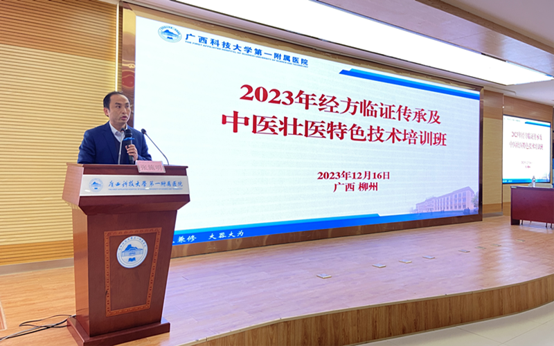 时逢癸卯仲冬,初冬的清冷抵挡不住浓浓的学术热情。12月16日,由广西科技大学第一附属医院及柳北区医疗卫生机构管理协会共同举办的“2023年经方临证传承及中医壮医特色技术培训班”在我院学术报告厅成功举办。医院副院长张施明出席开幕式并致辞,来自区内外共150多名中西医、民族医学专家、同仁参加本次大会。开幕式由医务部部张兼康复医学科主任张云波及中医科教学秘书顾天琪共同主持。