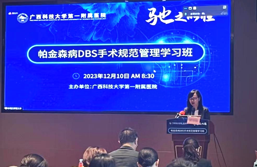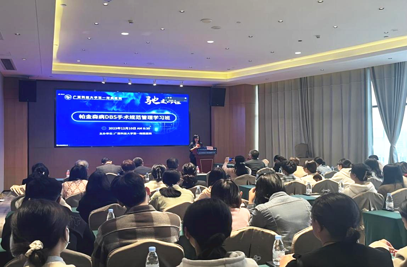 脑深部刺激术(DBS)于2002年被美国FDA批准用于治疗帕金森病,截至2016年6月,全球已有135000例患者接受了这种治疗。DBS手术创面小、出血量少、术后康复快,目前已经成为中晚期帕金森病重要的治疗手段。随着DBS术在国内的推广应用,包括神经内科、神经外科、麻醉科、康复科等在内的多学科联合诊疗已成为帕金森病治疗的发展趋势,广西科技大学第一附属医院帕金森病诊治中心成功为近40例患者实施手术,效果良好。为进一步强化神经内外科医师帕金森病DBS术全程管理的理念,推动帕金森病全程管理专业化、精准化和规范化发展,2023年12月10日,成功举办了主题为帕金森病DBS手术规范管理的国家级继续教育项目学习班。