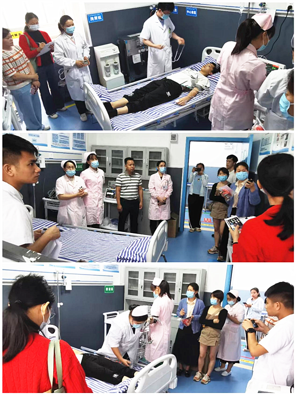 对忻城县古蓬中心卫生院胸痛救治单元进行指导并开展接诊胸痛患者及心肺复苏演练。