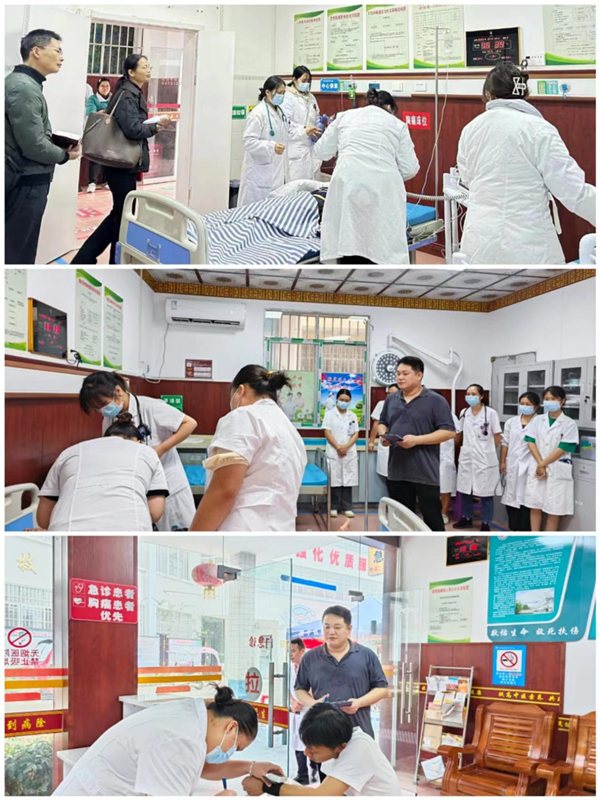 对忻城县北更乡卫生院胸痛救治单元进行指导并开展急救演练。