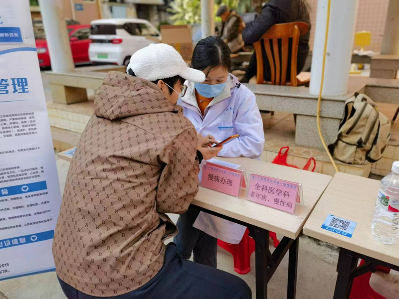 随着人口老龄化的加剧及生活方式的不断改变,慢性非传染性疾病逐渐成为困扰全人类的重大公共卫生问题。在我国,慢病管理更是道阻且长,备受临床及全社会的关注。伴随“健康中国2030”规划纲要的实施,慢病综合防控已经提升至国家层面。慢性病具有医疗费用昂贵、危害巨大等特点。所以医疗保险对慢性病提供一定的补助,帮助减轻百姓的生活负担。广西区内职工医保和居民医保参保人员符合条件均可到广西科技大学第一附属医院全科医学科申请门诊特殊慢性病保障。为方便百姓,全科医学科还把慢病办理窗口外延至社区、街道,让百姓在家门口就可以办理慢性病补助申请,大大方便了慢病患者,特别是行动不便的老年人。