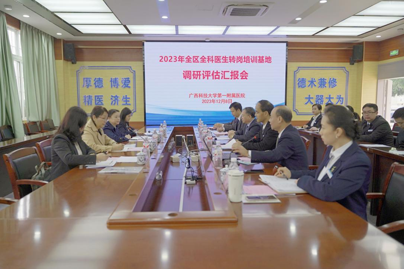 近日,2023年全科医生转岗培训基地调研评估组专家一行四人至广西科技大学第一附属医院展开调研评估,此项工作分为调研评估汇报会、反馈会以及现场调研。