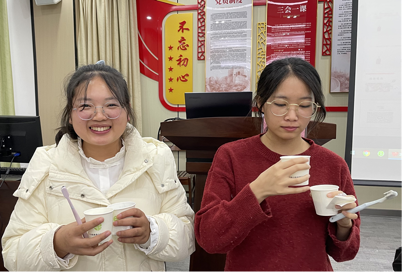 讲座的亮点是趣味刷牙比赛和现场一对一口腔检查,在刷牙比赛中同学们将讲座中学到的知识现学现用,体会到刷牙这件每天都在做的事,实际却有许多学问包含在细节中;现场口腔检查更是引起同学们浓厚的兴趣,在先进的口腔内窥镜帮助下,医护人员将口腔检查的影像同步传送到显示屏上,让同学们以最直观的方式了解自己的口腔健康状况,更加深刻的意识到了爱牙护齿的重要性。