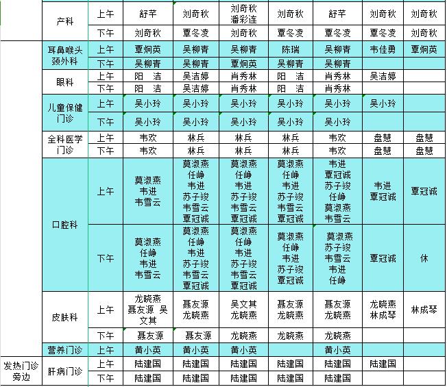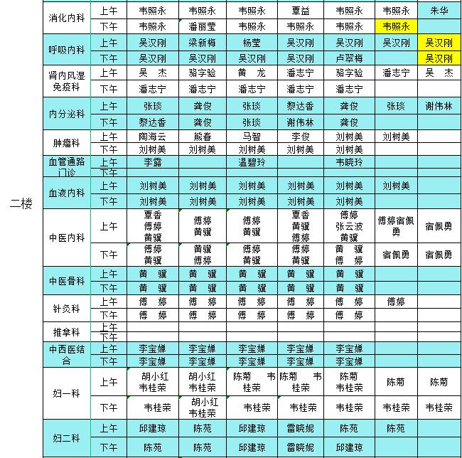2023年11月20日-11月26日门诊医生出诊信息表