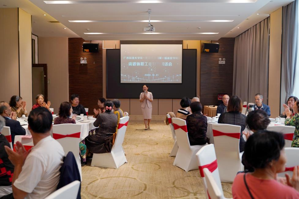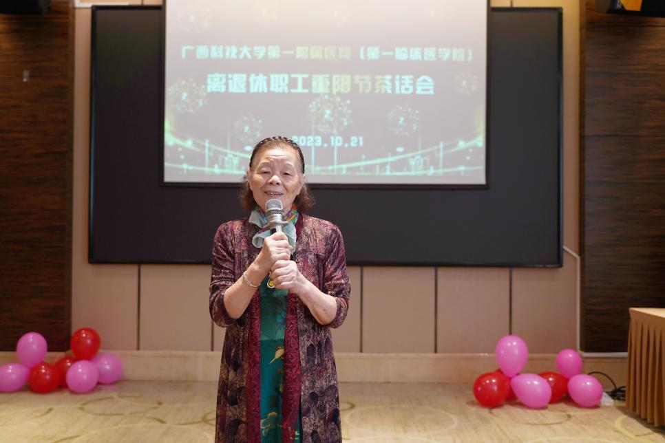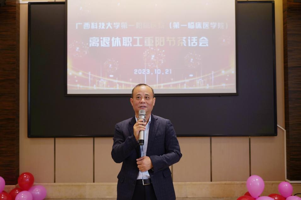 追忆峥嵘岁月,共叙奋斗深情。值此重阳佳节来临之际,广西科技大学第一附属医院(第一临床医学院)在宜家紫荆花酒店百盛厅举行了离退休职工重阳节茶话会。医院(学院)党委副书记、院长覃天等在家院领导班子成员出席了茶话会,原医院院长王延敏等40余名离退休职工参加茶话会。茶话会由党委副书记、工会主席何曲波主持。