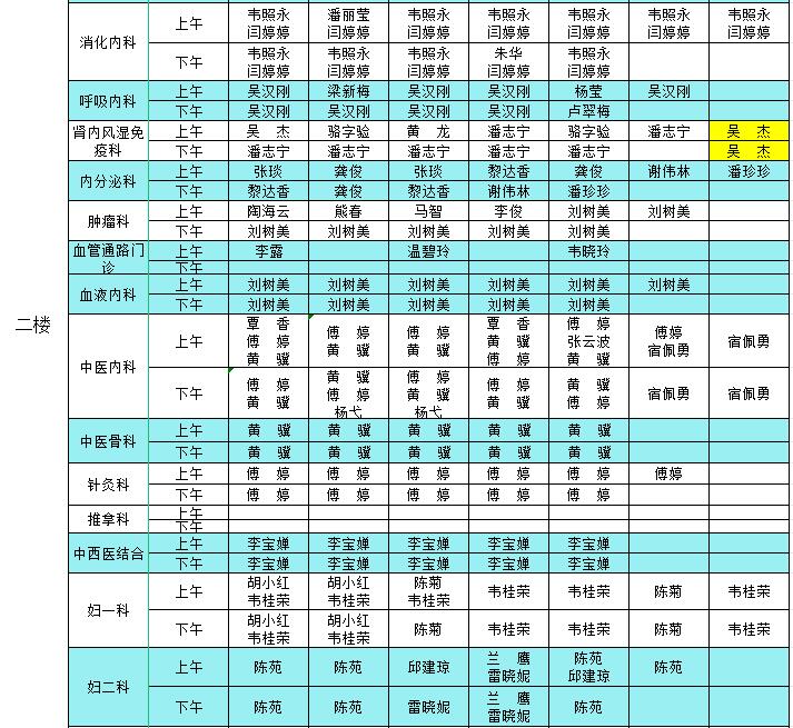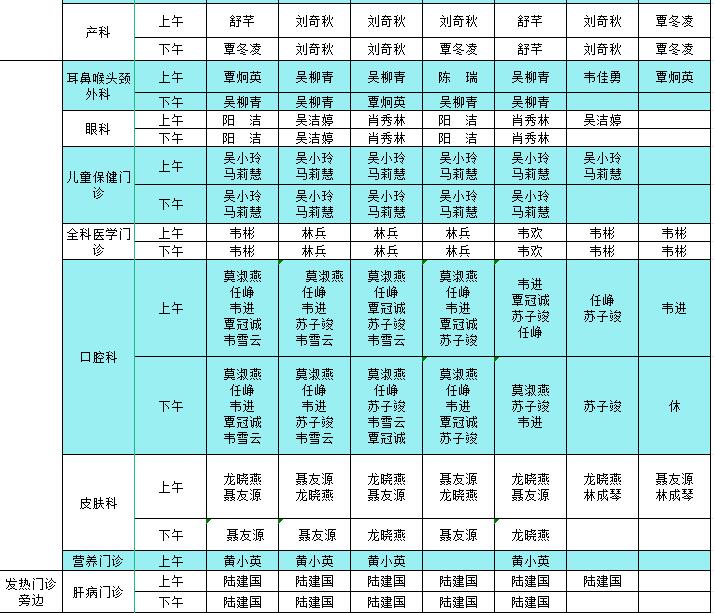 2023年10月9日-10月15日门诊医生出诊信息表