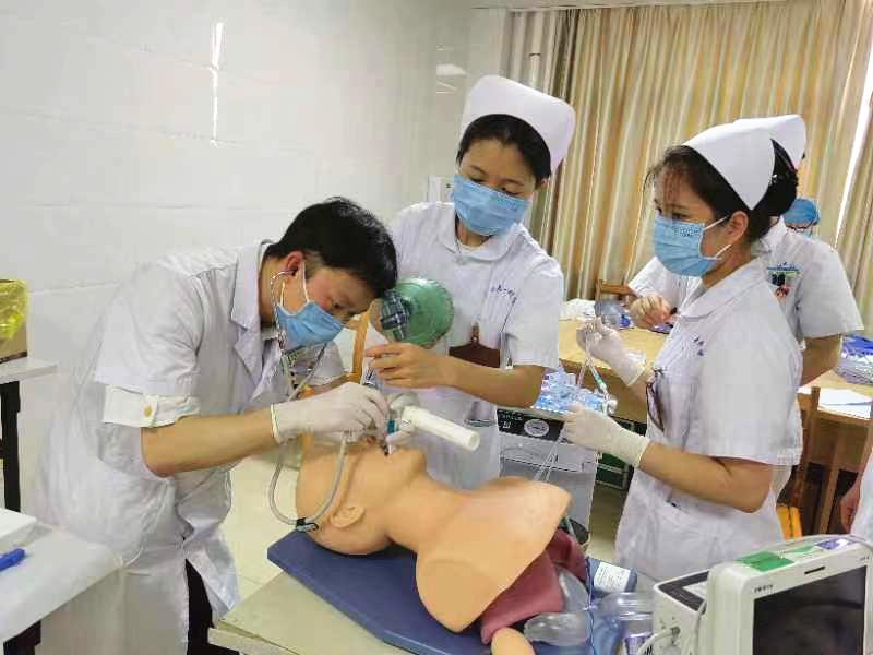 为进一步规范患者突发意外救治流程,提高医务人员应对突发事件应急处理能力,最大限度保障患者生命安全,广西科技大学第一附属医院全科医学科定期进行各种突发情况的急救演练。近日,为了让医护人员更好掌握心肺复苏技能与流程,提高应急能力及对突发心跳骤停患者的抢救能力,确保能及时、有效地采取应对措施,以最大程度保护患者的生命和健康,科室组织了一次医护配合的药物过敏致呼吸心跳停止应急演练。