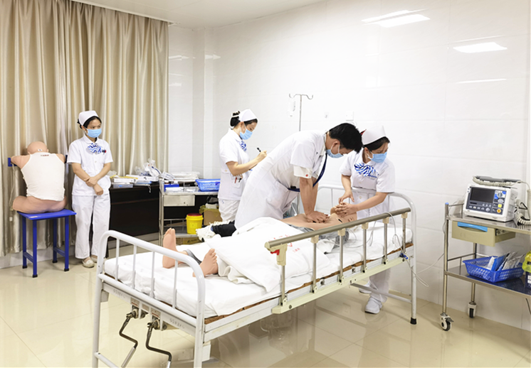 本次演练场景模拟一位女性患者,40岁,诊断“肺炎”。医嘱“青霉素皮试(-),生理盐水100ml+派拉西林舒巴坦4.5g静滴。输液过程中,患者诉胸闷、气促。查体发现患者手臂、前胸散在红疹,怀疑药物过敏,立即关闭输液,呼叫医生及其他护士前来的过程中突然出现了意识丧失,大动脉搏动消失。医务人员立即按照应急预案的标准流程进行抢救。演练从多方面检验全科医学科医护人员应对药物过敏致心跳骤停的应急处置能力,并以此检验救治流程是否合理,是否存在缺陷,时间节点处置是否达到规范要求。