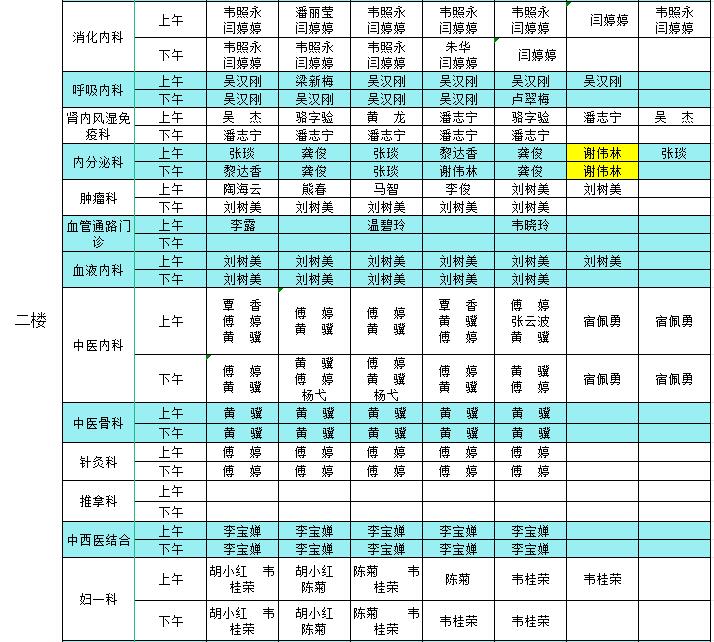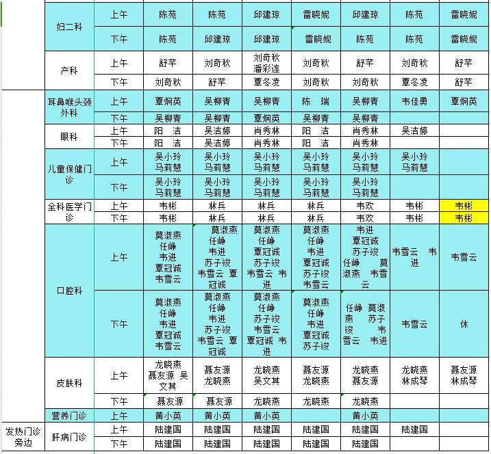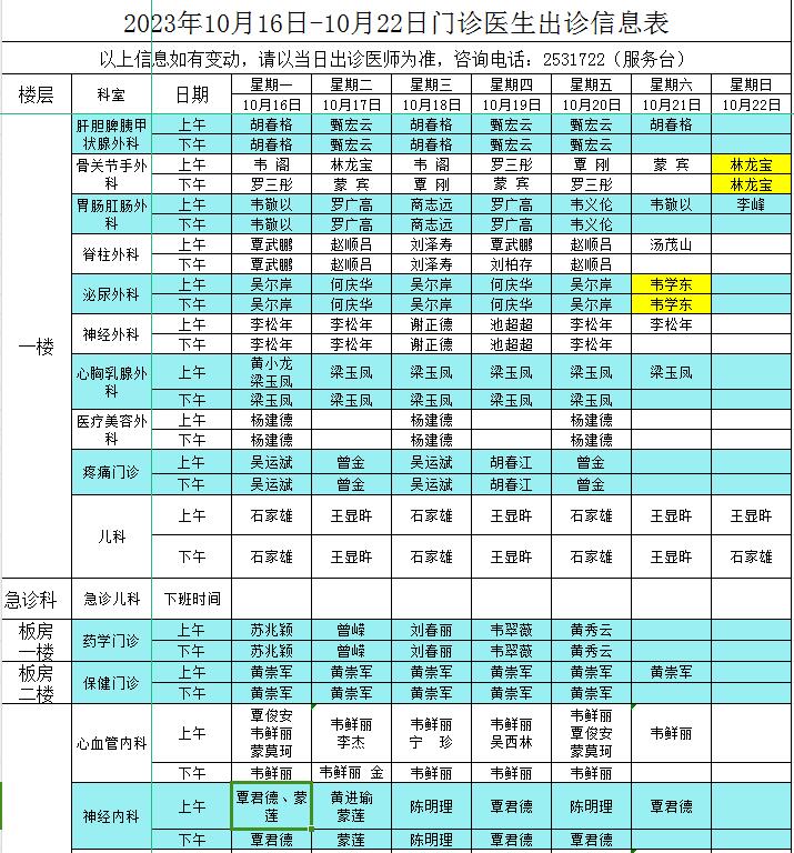 2023年10月16日-10月22日门诊医生出诊信息表