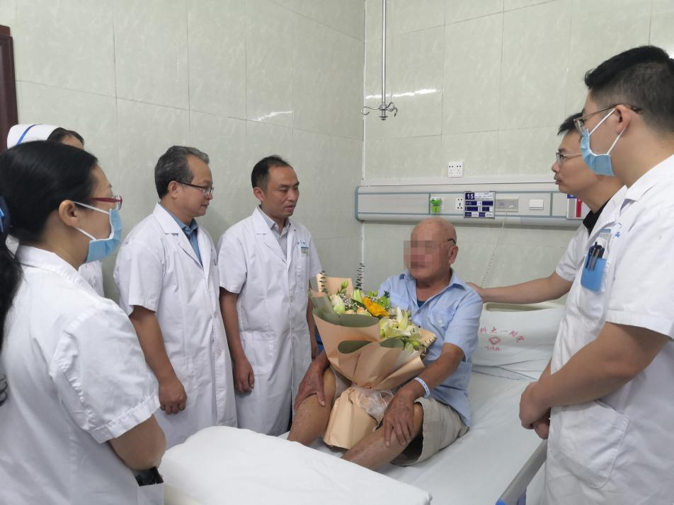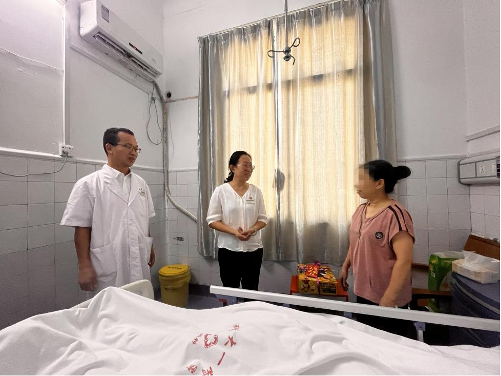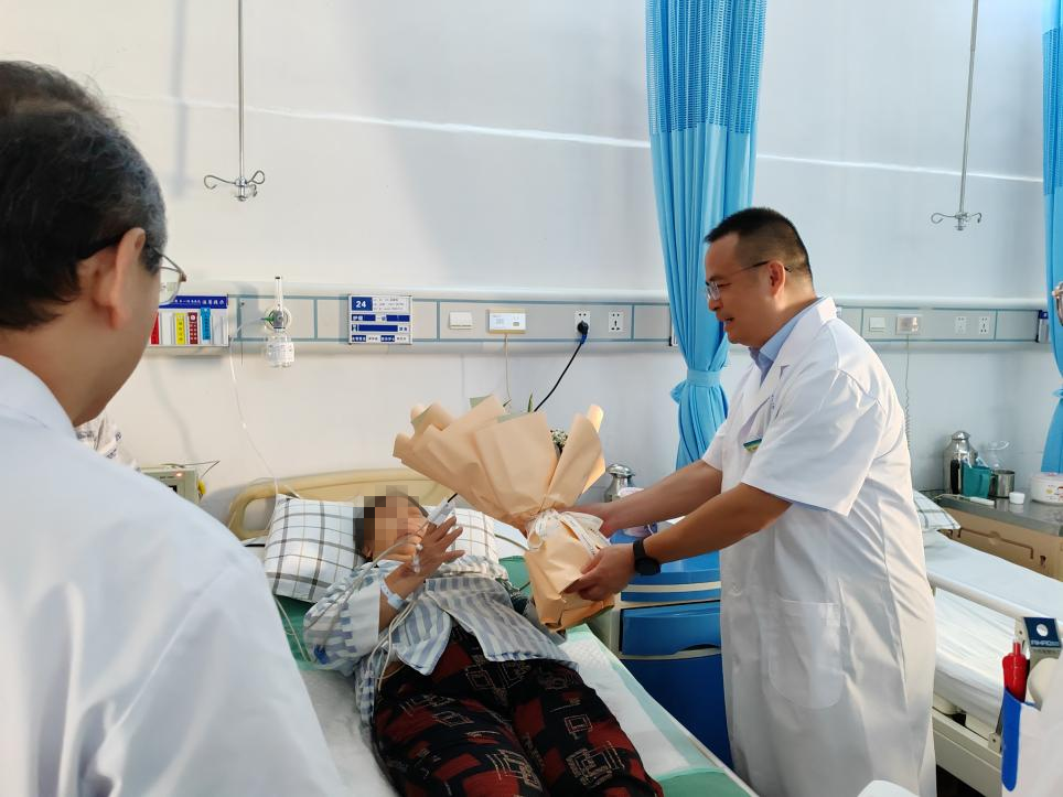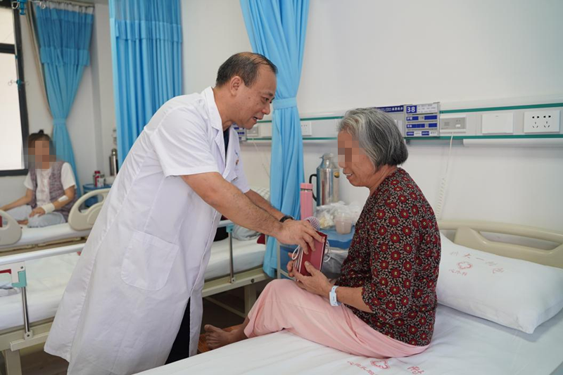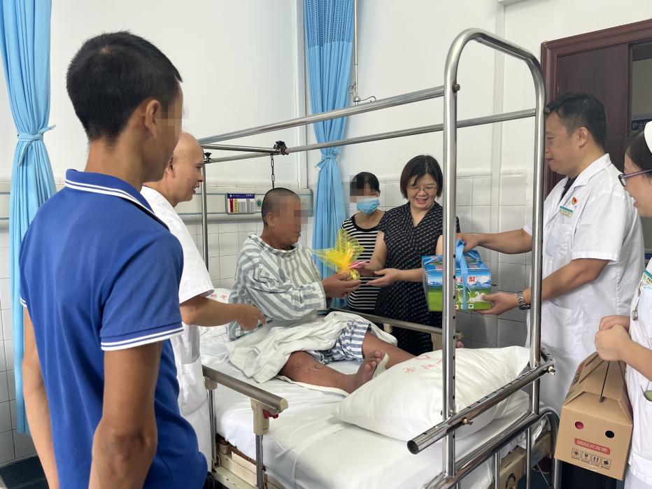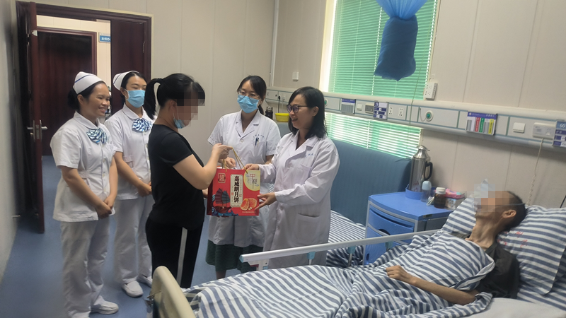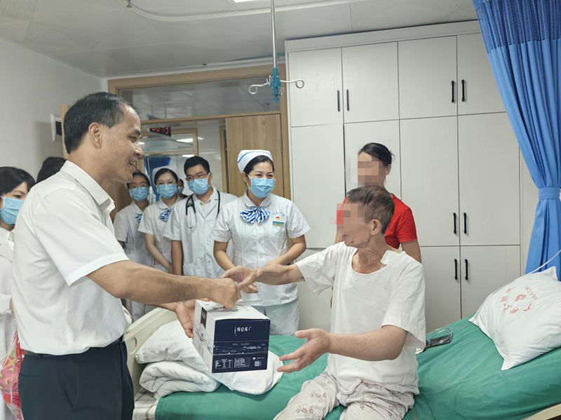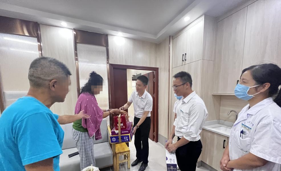中秋、国庆“双节”来临,可是部分患者因为病情原因,还得留在医院住院。为让他们安心治病,感受到医院的关怀,9月28日,广西科技大学第一附属医院全体院领导班子分成9组,来到病区慰问“双节”期间的住院患者,给他们送上节日慰问品。