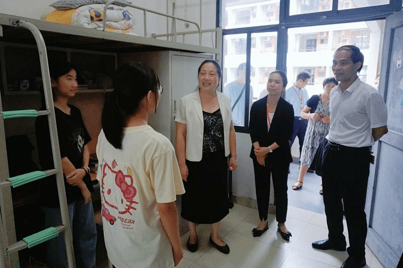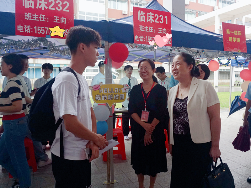 9月13日上午,广西科技大学党委常委、副校长秦小云,一临床党委书记庞晓红、医学部党委副书记蓝娟一行到一临床检查指导迎新工作并到宿舍慰问新生。秦小云副校长同新生和家长交流沟通,了解新生报到情况,入校后生活服务及保障工作情况。