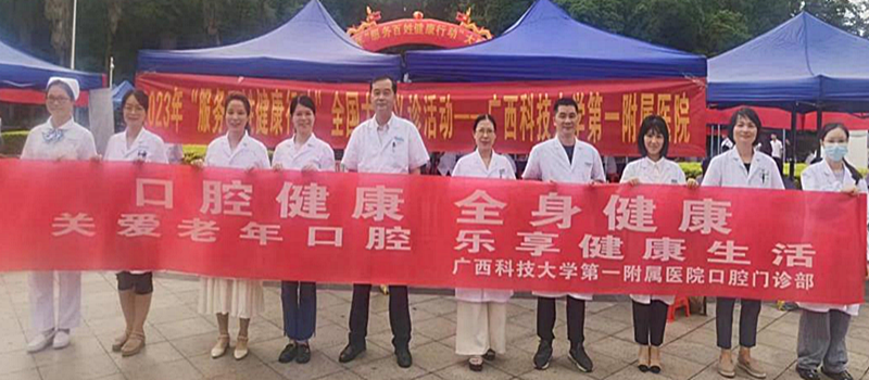 广西科技大学第一附属医院口腔门诊部积极响应全国爱牙日主题号召,采取多种形式关爱老年人口腔健康。9月16日,参与“服务百姓健康行”大型义诊活动,在鱼峰公园广场为广大市民义诊,特别为广大老年朋友进行了专业的口腔检查,提供口腔疾病防治意见,发放详细而生动的口腔科普资料。近日,还在门诊部多媒体教室举办了口腔健康讲座,与老年朋友们面对面交流答疑,获得了群众的一致好评。
