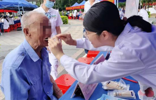 口腔门诊部专家为老年朋友开展口腔检查及口腔健康讲座
