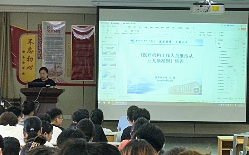 为强化从业人员基本行为规范,增强医务人员依法执业、廉洁从医的意识。9月18日下午,广西科技大学第一附属医院医务部及院内多科室专家在第一临床医学院党员活动室组织开展依法廉洁从医专题培训。