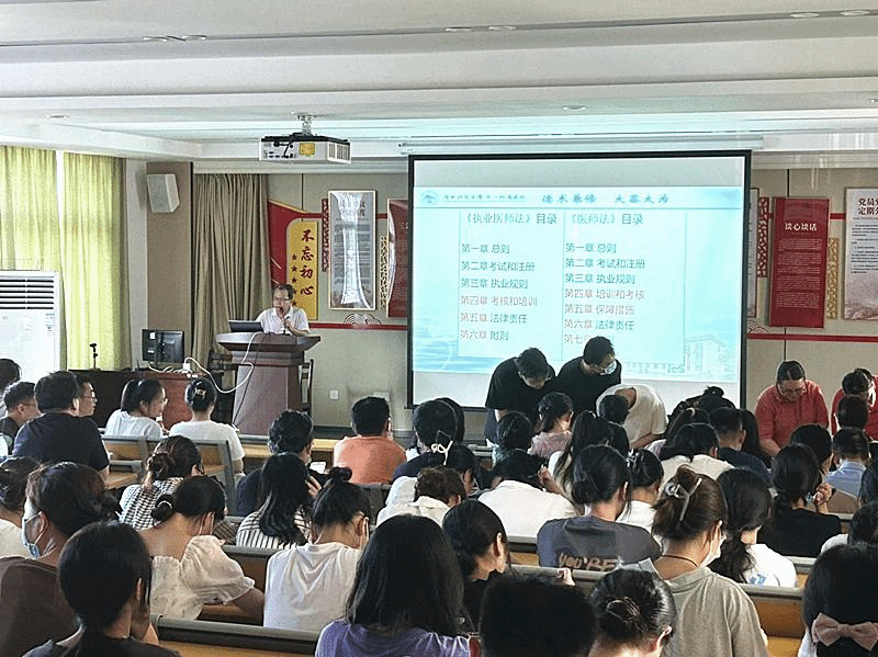 本次培训讲解了《中华人民共和国医师法》、《廉洁从业九项准则》《中华人民共和国基本医疗卫生与健康促进法》等法律法规,全方位、多角度地向医务人员进行细致解析。此次培训,旨在弘扬法治精神,普及法治知识,使全体医务工作者对依法执业有了更全面准确的认识也明确了国家对医师权益的保护和重视,为全面提升我院医疗服务质量,构建和谐医患关系起到了积极的推动作用。