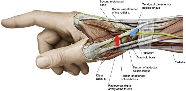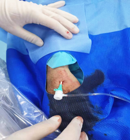 为提高患者舒适性,便于通路系统输送,减少桡动脉术后闭塞的可能性,手术医师决定采取远桡穿刺置鞘。经桡入路具有穿刺部位表浅,损伤小,出血少,并发症少;术后即刻下床活动,舒适度高;缩短住院时间,节约费用等优点。经远桡入路在此基础上还能显著减少桡动脉闭塞的发生,术后穿刺点加压包扎,患者就诊体验明显提升。经远桡动脉脑血管造影的成功实施,为脑血管病患者提供了新的检查治疗途径,体现了微创、快速、准确的救治理念,提高了脑血管介入手术的舒适度和可接受性。经桡动脉行全脑血管造影术以其微创、安全性高、疗程短等优点已被广泛应用于临床治疗中。