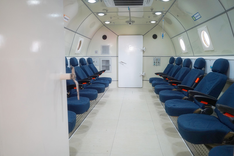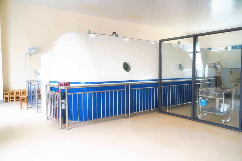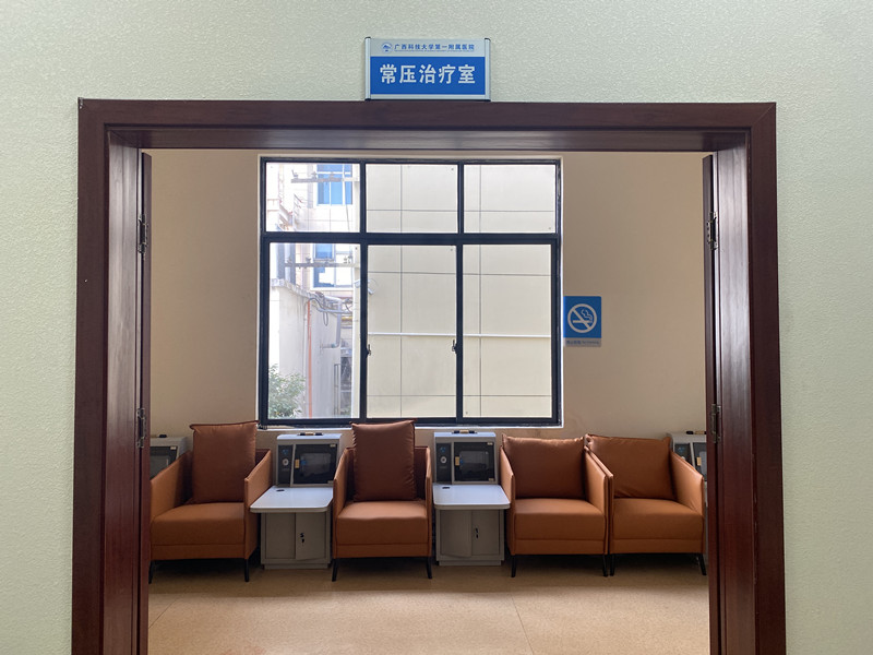 广西科技大学第一附属医院高压氧科成立于2023年,YC3200型医用空气加压舱,室内宽敞明亮,环境优雅,可容纳34人同时实施常规治疗及危重病人的抢救治疗。目前拥有国内最先进、性能最稳定、安全性最强、人均舱容为4.23立方米的三舱七门大型氧舱群。设备和设施达到国内先进的标准,有先进的计算机自动化操舱与安全检测技术;空调系统能够永磁藕合感应传动外循环变频中央送风技术;多功能综合吸氧控制技术;供氧动态监测与流量计量技术;多画面电视监控系统,随时观察了解舱内病人治疗的情况。采用安全、阻燃、无毒内外装材料,设有消防水喷淋系统、氧气湿化装置。舱内设有急救供氧系统及负压吸引装置、气管切开吸氧装置、空调系统、电视播放系统、应急呼叫系统等。科室的专业技术力量雄厚。目前拥有副高级职称医务人员1名,中级职称医务人员2名,氧舱专业技术维护人员1名。