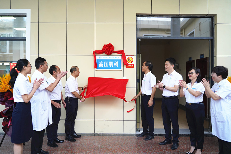 9月6日早上8点,广西科技大学第一附属医院高压氧科举行开科暨揭牌仪式。医院党委书记庞晓红、党委副书记、院长覃天等医院领导班子成员出席仪式。党委委员、副院长张施明主持仪式。医务部、护理部、康复医学科、神经内科、神经外科、重症医学科、全科医学科、门诊部、健康管理科等相关科室中层干部、医护人员代表等参加仪式,共同见证喜悦时刻。